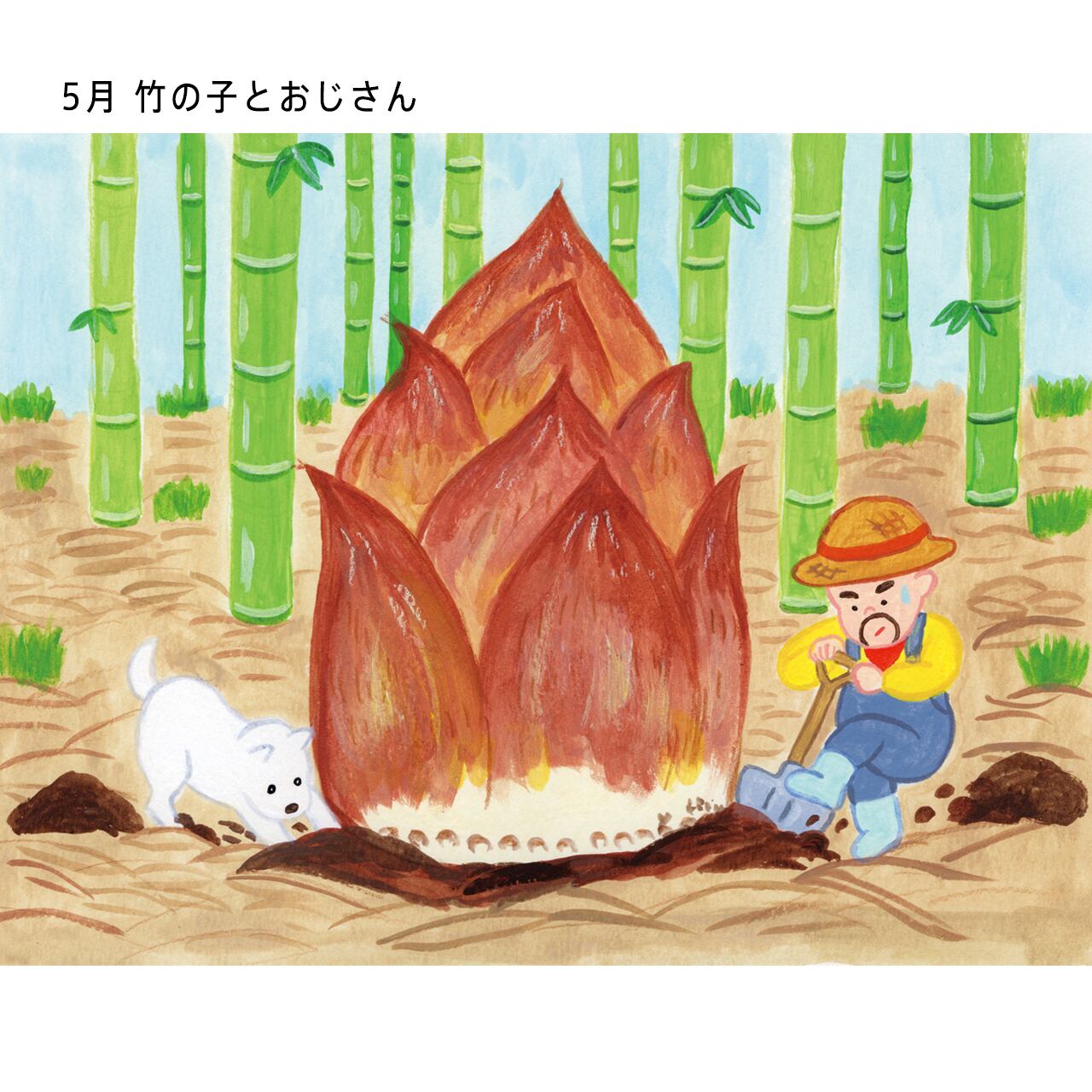 小さな小人のおじさんと、動物たちが、季節ごとの旬の野菜や果物と戯れている様子を描きました。ほのぼのとした世界観をお楽しみ頂けます。